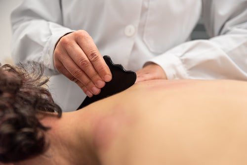 O Gua-Sha compreende o uso de uma pedra com uma aresta arredondada, para a aplicação de uma massagem profunda, promovendo o alívio de contraturas e melhorando a circulação.